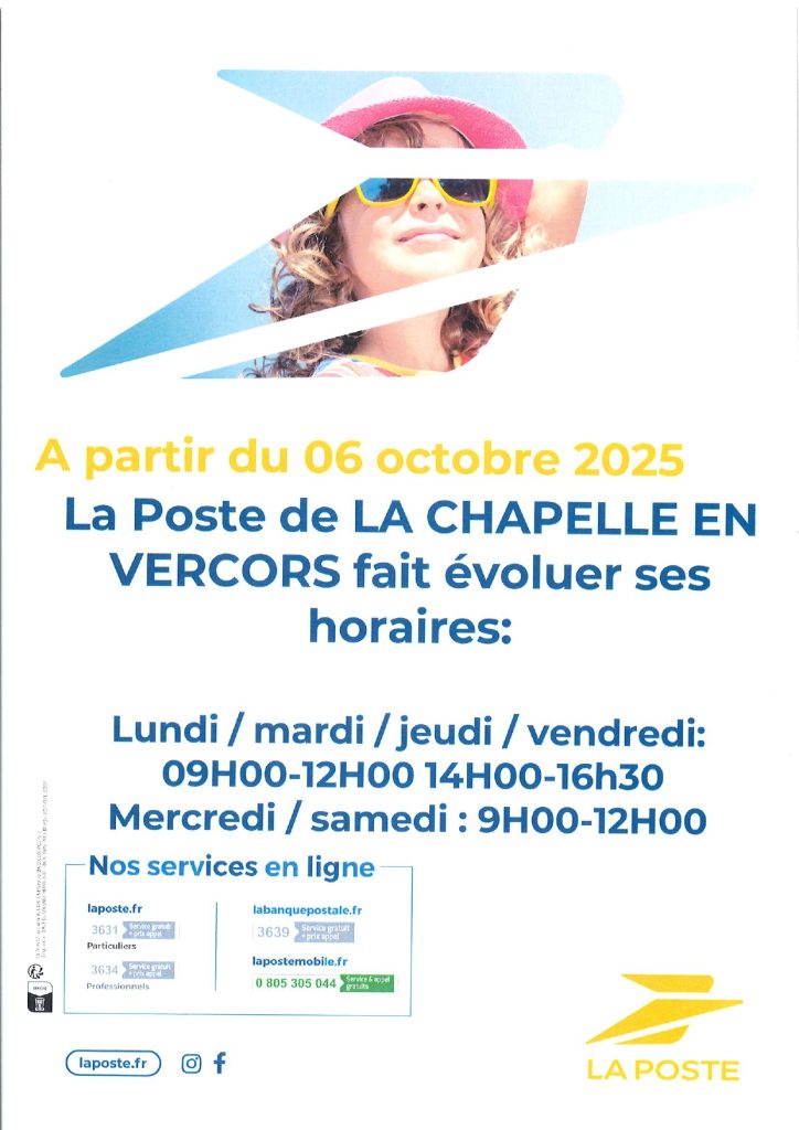 Fermeture exceptionnelle La Poste L’agence postale de La Chapelle en Vercors sera fermée exceptionnellement mardi…