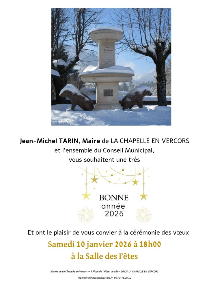 Jean-Michel TARIN, Maire de LA CHAPELLE EN VERCORS et l’ensemble du Conseil Municipal, vous souhaitent…